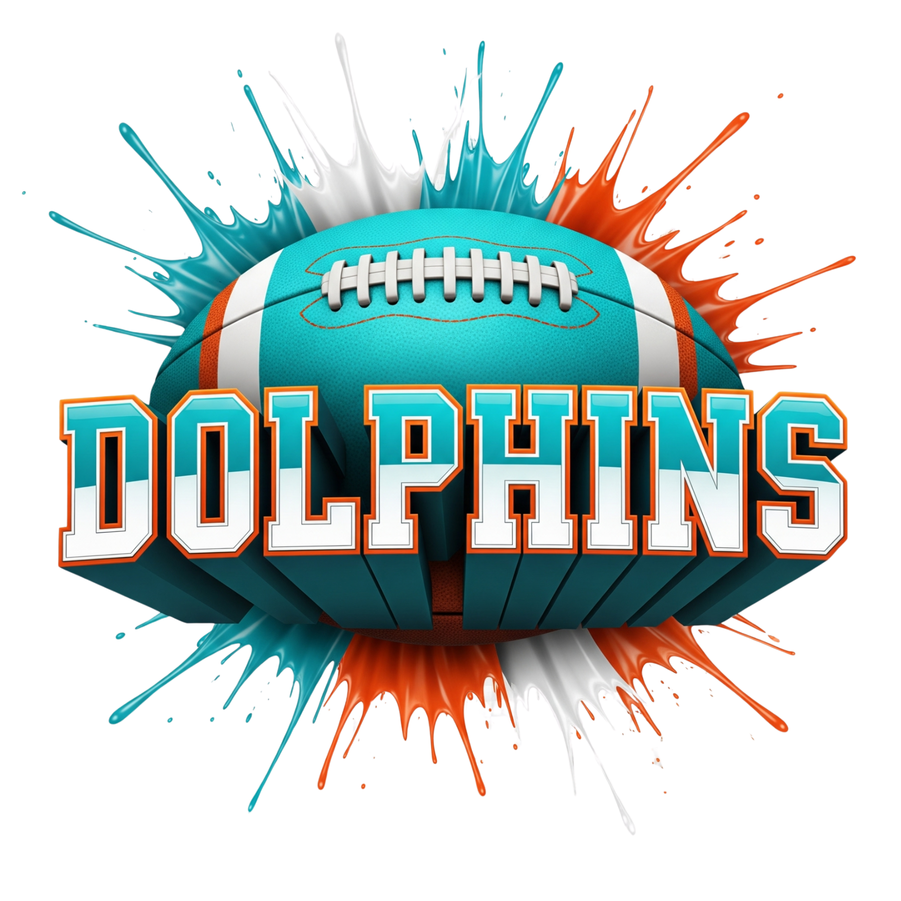Featuring a bold aqua, orange, and white 3D football design, this shirt captures the energy of the game and your love for your team. Soft, comfortable, and made to last — perfect for any fan.