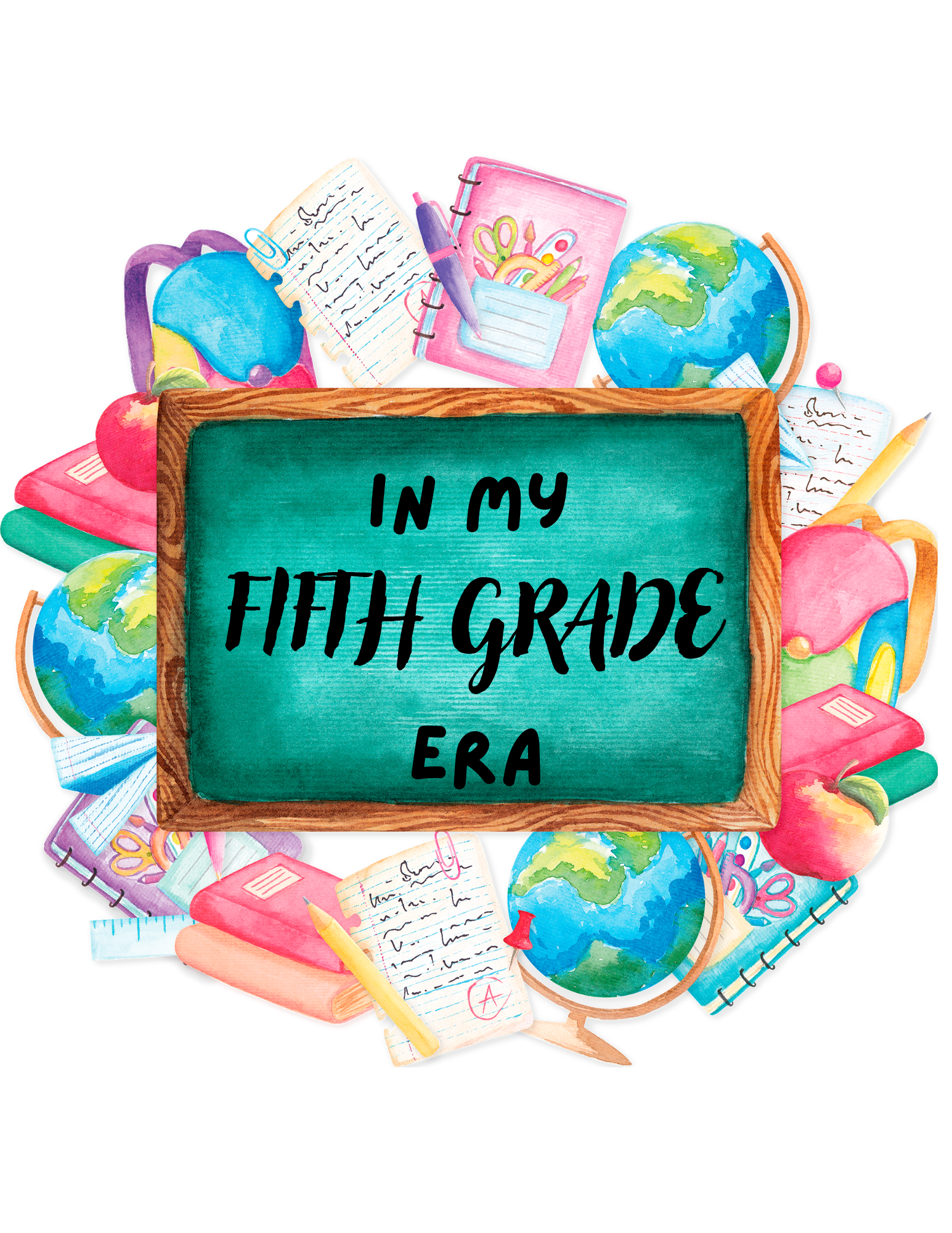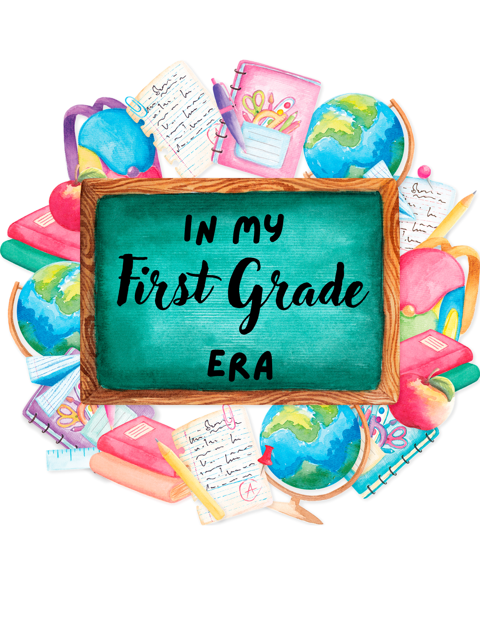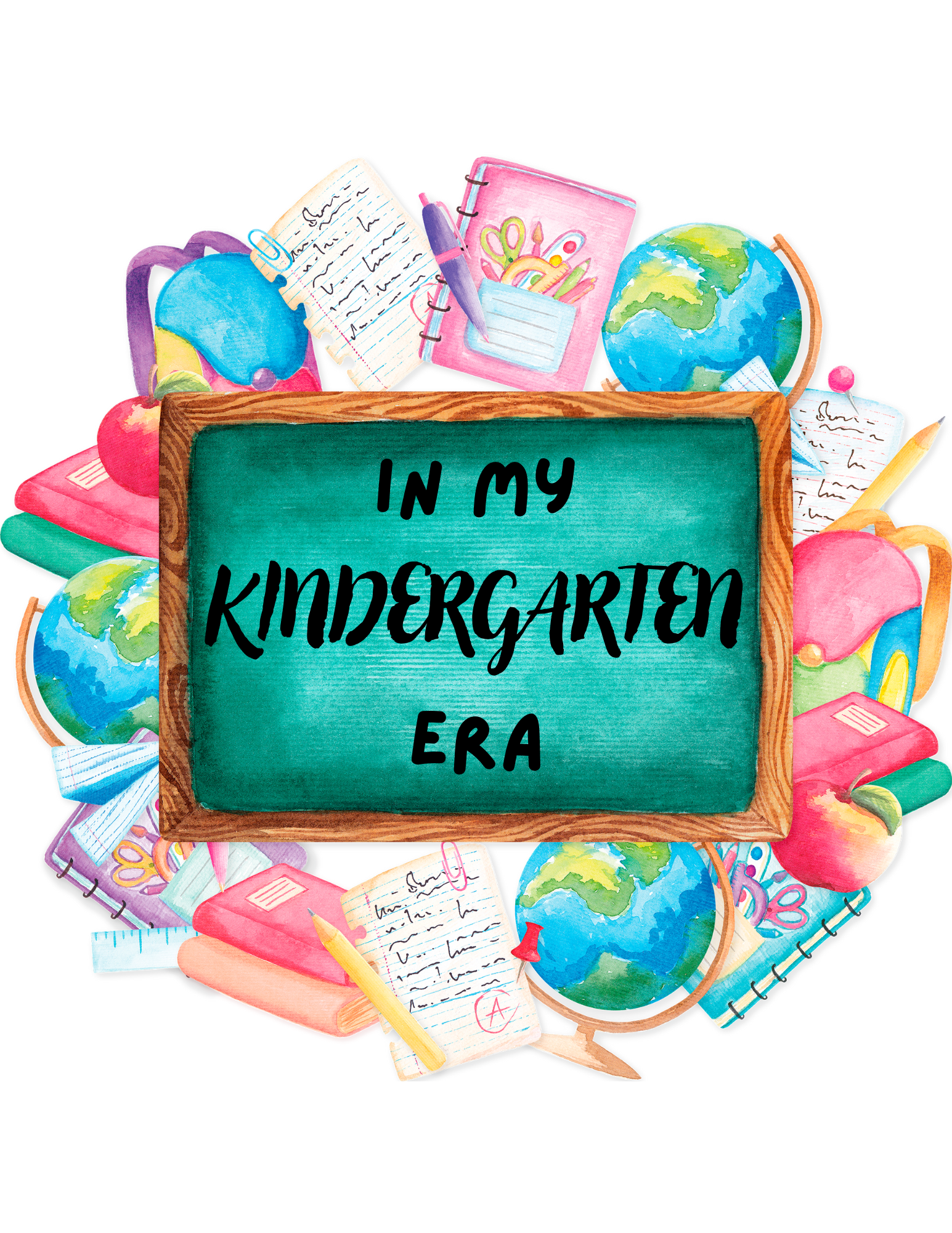 Celebrate the beginning of an amazing learning journey with this adorable "In My Era" design! Featuring fun, chalk-style text on a classic chalkboard, surrounded by charming school elements like globes, notebooks, pencils, and backpacks, this graphic perfectly captures the excitement of starting a new school adventure. It's a charming and nostalgic design ideal for t-shirts, gifts, or commemorating those precious first school memories.