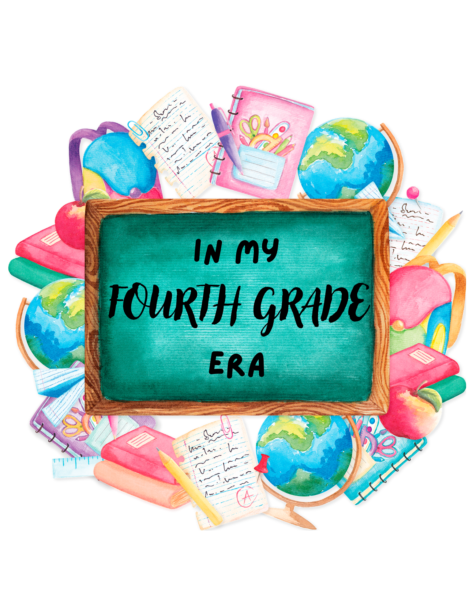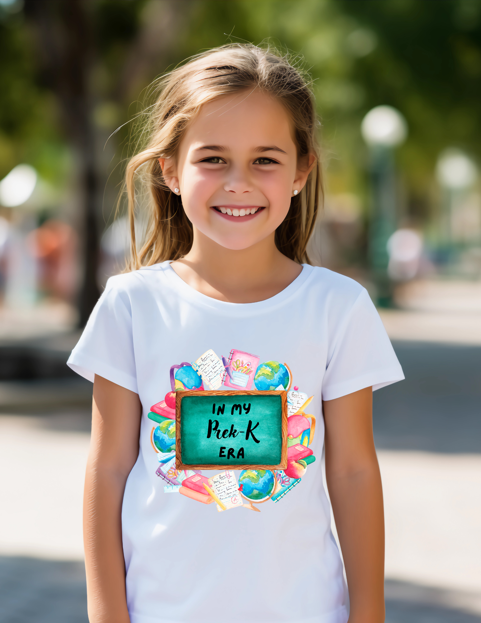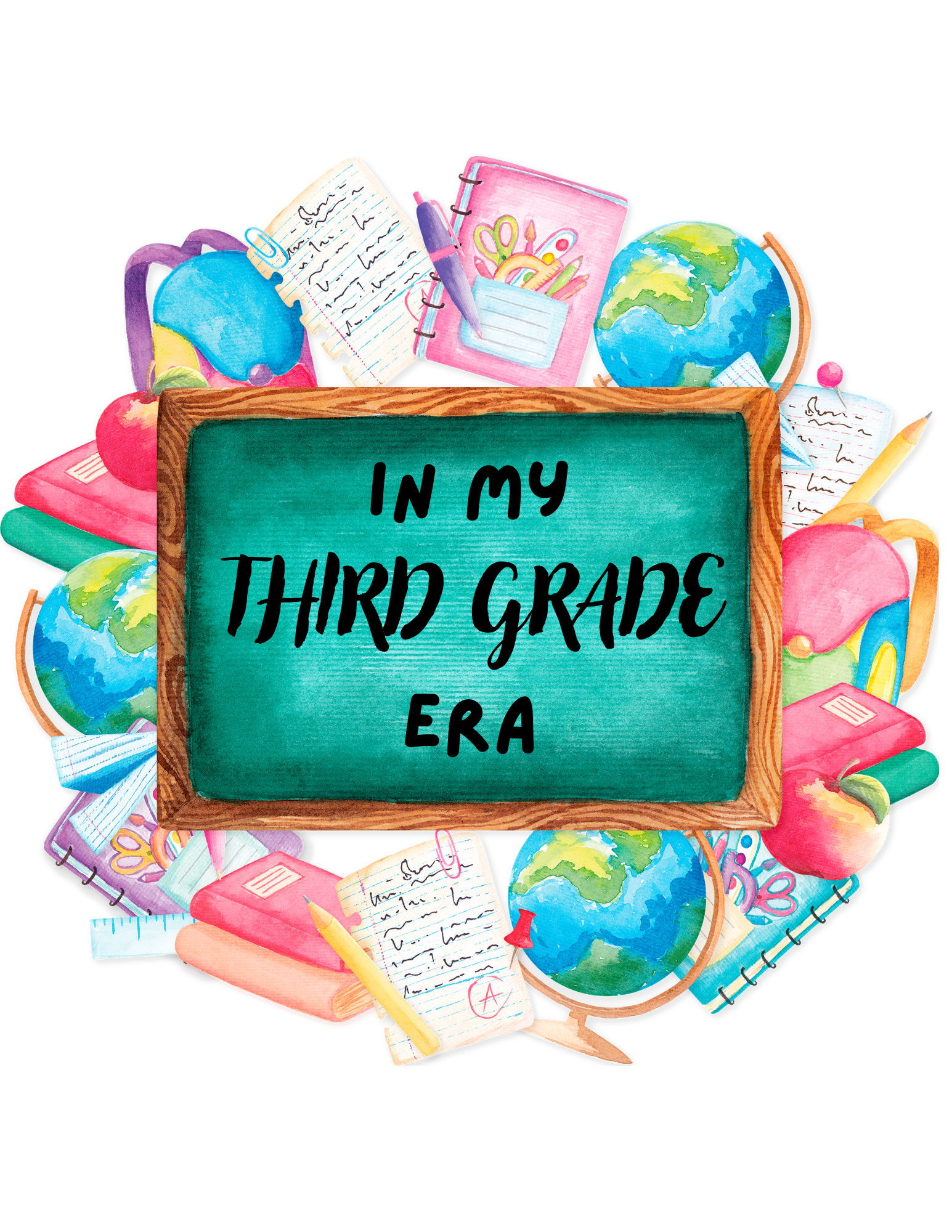 Celebrate the beginning of an amazing learning journey with this adorable "In My Era" design! Featuring fun, chalk-style text on a classic chalkboard, surrounded by charming school elements like globes, notebooks, pencils, and backpacks, this graphic perfectly captures the excitement of starting a new school adventure. It's a charming and nostalgic design ideal for t-shirts, gifts, or commemorating those precious first school memories.