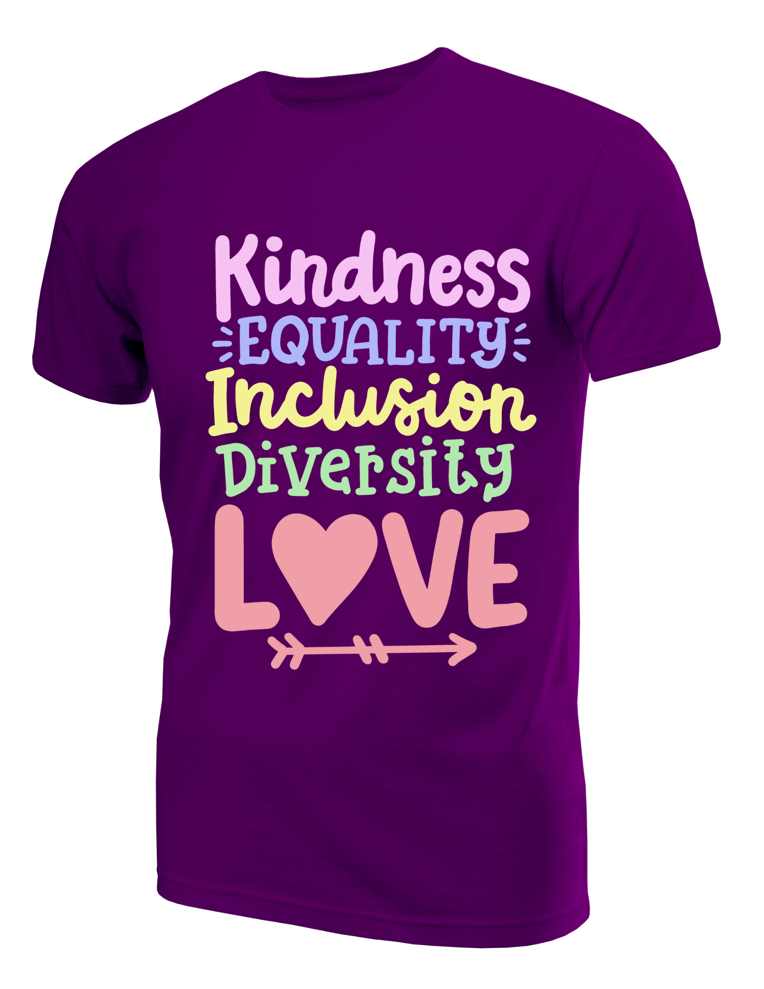 Wear your heart on your sleeve with this meaningful t-shirt proclaiming "Kindness, Equality, Inclusion, Diversity, LOVE." This tee is more than just clothing; it's a declaration of principles, encouraging a world where everyone belongs. Perfect for those who champion these essential human values.